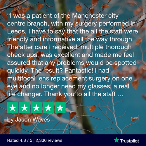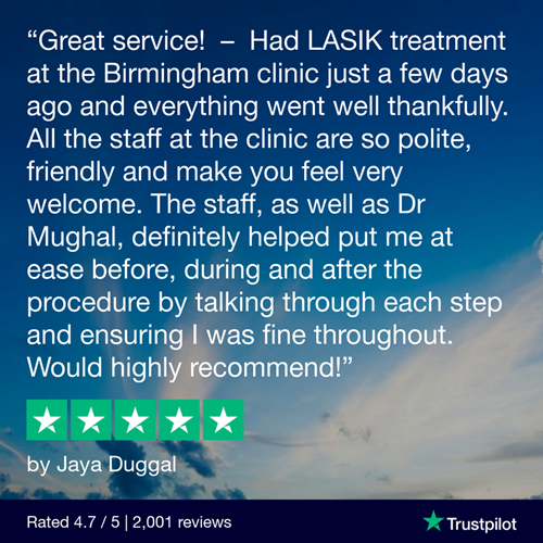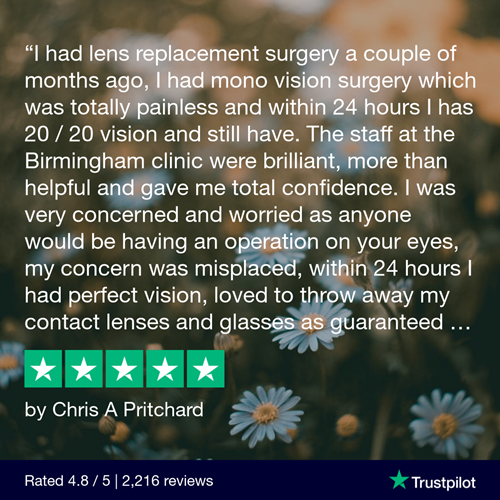 Whether you’re considering having laser eye surgery, lens replacement treatment or cataract surgery, you’re sure to find the information you need from over 2,000 reviews on our Trustpilot page. We like our patients to be as informed as they can possibly be before having their treatment with us, and a large part of that is hearing first-hand from other patients what to expect.